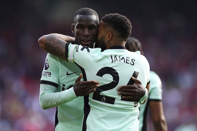 Reece James dan Nicolas Jacksen pada laga Nottingham vs Chelsea di Premier League 2023/2024 (c) Mike Egerton/PA via AP