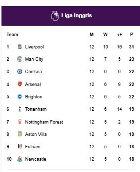 Klasemen Premier Leaguesumber : http://palapabola2.com
