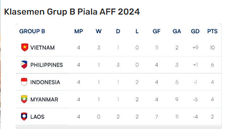 Klasemen Grup B Piala AFF 2024